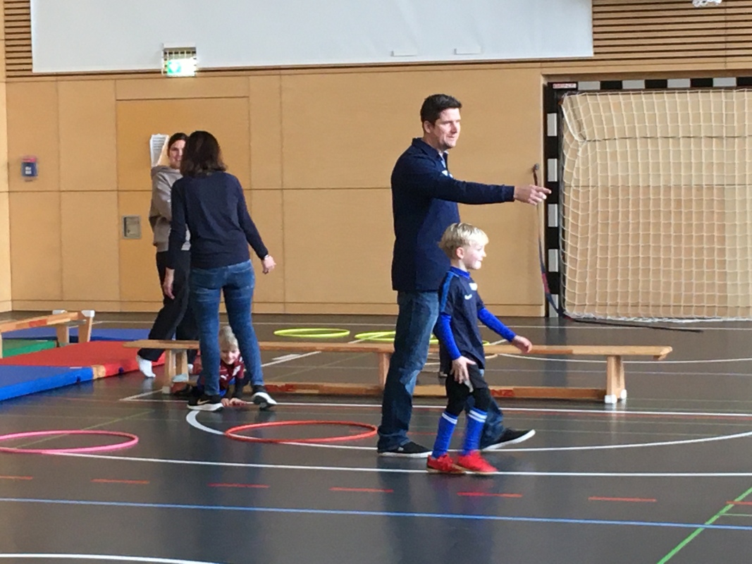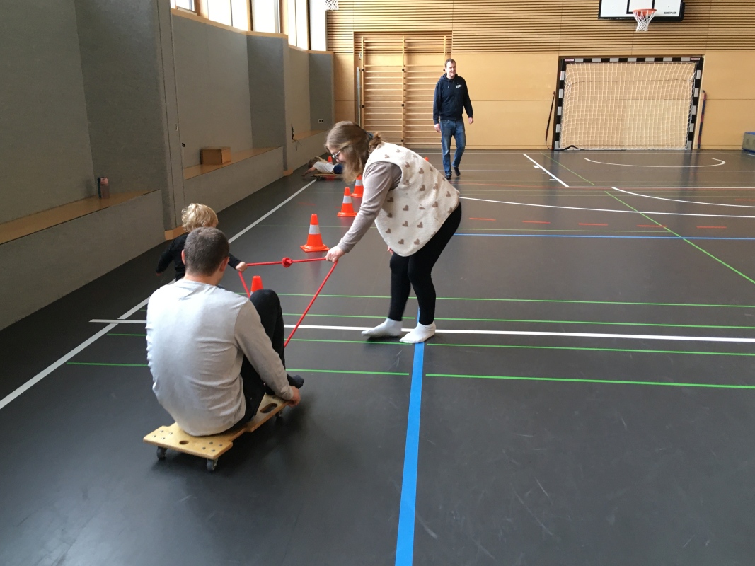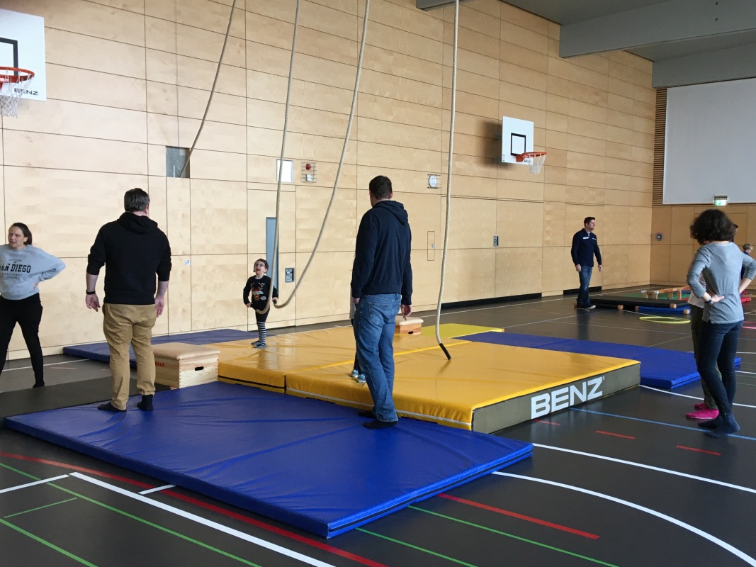 Im Mittelpunkt des Treffens standen dieses Mal vielfältige Bewegungsspiele. Nach kurzen Aufwärmübungen mit Musik und Trommeln wechselte die Gruppe in die große Sporthalle. Dort erwarteten die Kinder fünf verschiedene Bewegungsstationen, die sie nacheinander meistern konnten. Zum Einsatz kamen Rutschen an der Sprossenwand, Taue, ein Trampolin, Rollbretter sowie ein Bewegungsparcours. Die Kinder konnten sich ausprobieren, ihre Geschicklichkeit testen und sich mit viel Freude bewegen.