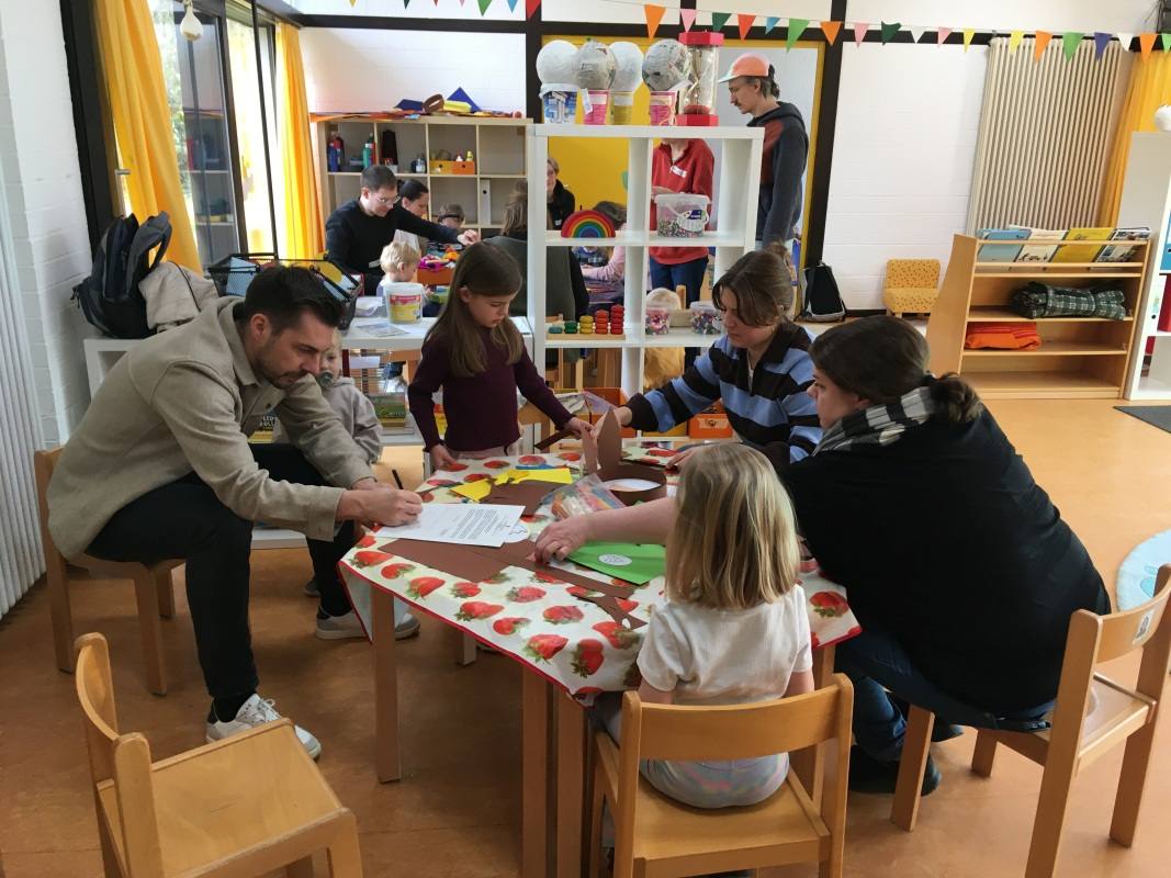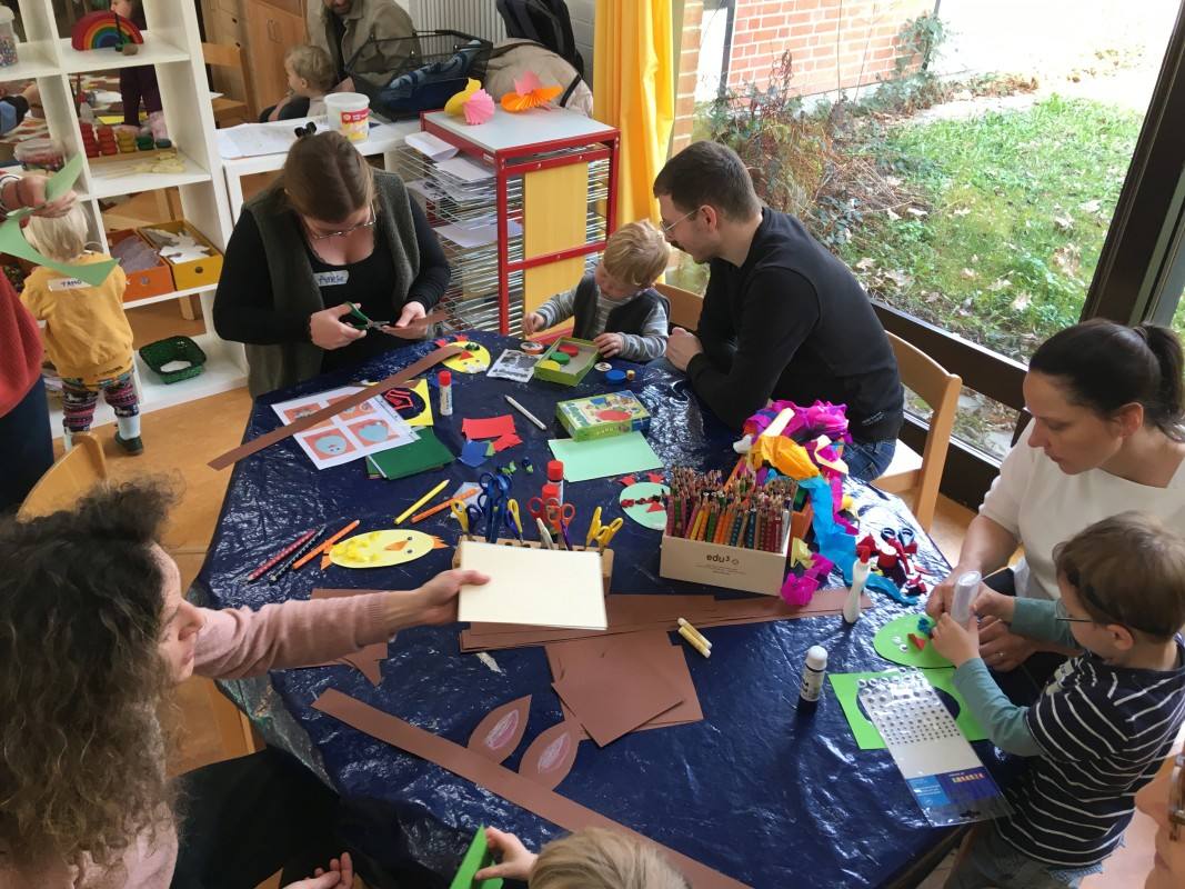 Sowohl beim gemeinsamen Vesper als auch beim Basteln und Spielen kam es zu einem regen Austausch zwischen den Familien.