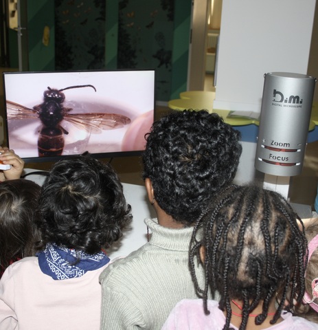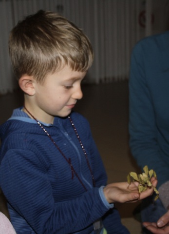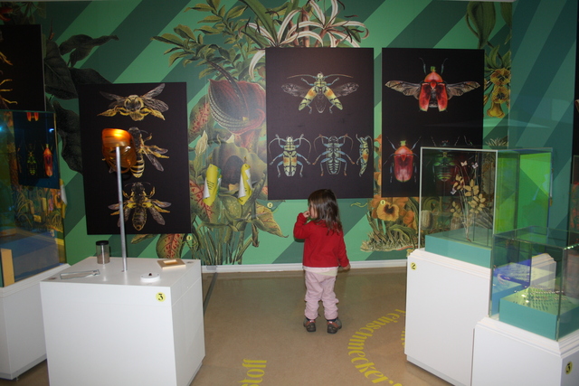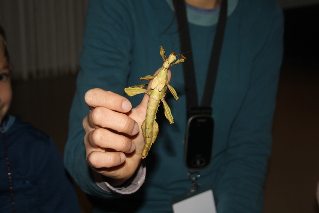 Sie haben erfahren, dass Insekten sechs Beine haben. Jedes Kind bekam die die Aufgabe ein bestimmtes Insekt, welches sie als Modell erhielten, unter den Ausstellungsstücken zu suchen.Zudem konnten sie verschiedene Insekten unter dem Mikroskop betrachten sowie Videos anschauen. Besonders aufregend war es für die Kinder, echte Insekten auf der Hand zu halten. Am meisten beeindruckt hat sie die australische Gespenstschrecke.