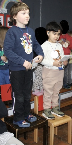 Für diese starke Leistung fand am 27.3 die Überreichung von Medaillen statt. Die drei Kinder, die am meisten geschafft hatten, wurden auf den Siegerpodesten geehrt und haben einen Preis erhalten. Alle Kinder haben jedoch zu unserem Ergebnis beigetragen und können stolz auf sich sein. Sie haben ebenfalls alle eine Medaille erhalten und bekommen noch eine Urkunde.