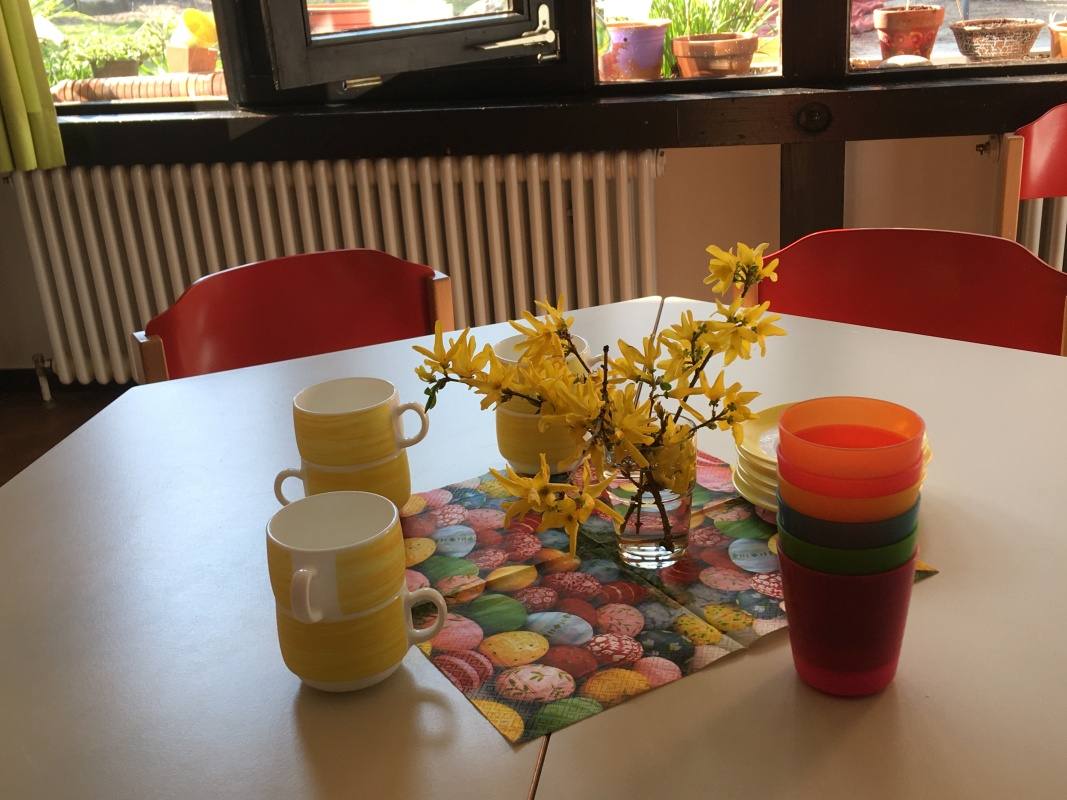 Um den Austausch zwischen Familien mit einem hörgeschädigten Kind zu ermöglichen, traf sich an einem Samstag vor Ostern die Eltern-Kind-Gruppe im Kindergarten des BBZ Stegen.