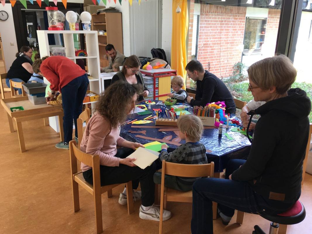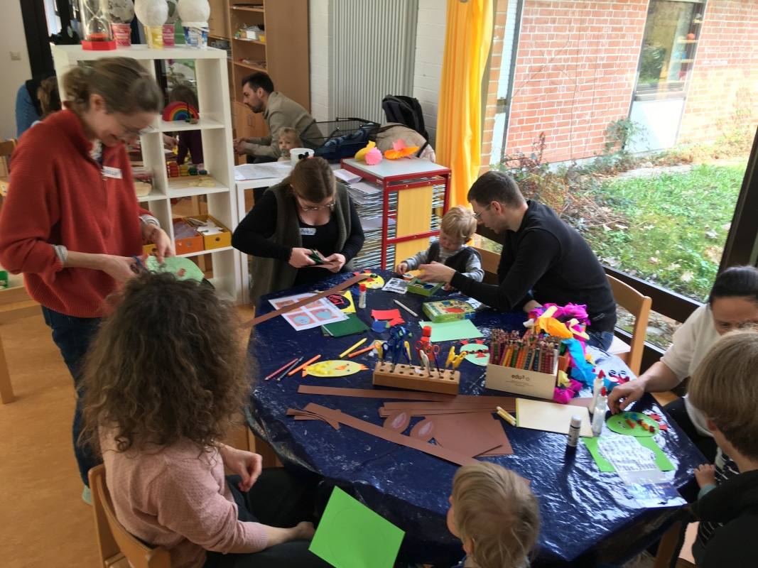 Sowohl beim gemeinsamen Vesper als auch beim Basteln und Spielen kam es zu einem regen Austausch zwischen den Familien.