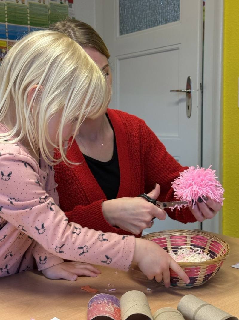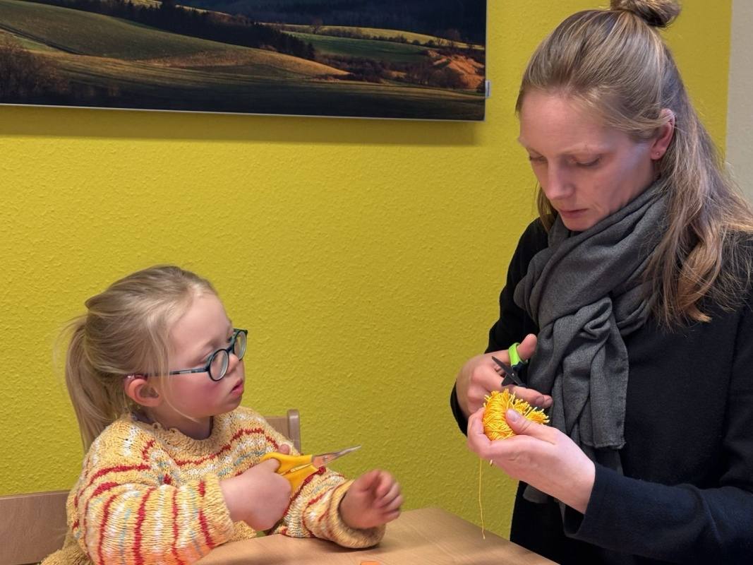 Zum Thema Frühling gab es ein buntes Programm mit Lauschaufgaben, Singen, Wortschatzaufgaben und Basteln. Nach unserem Kennenlernritual haben wir gemeinsam gespielt. Es ist toll, mit anderen Kindern zusammen zu sein, die auch ein Hörgerät haben! In unseren Kindergärten sind wir die einzigen, die eines tragen. Dann haben wir Osterküken aus Pompons gebastelt. Alle haben fleißig gewickelt. Wie schön unsere Küken geworden sind!