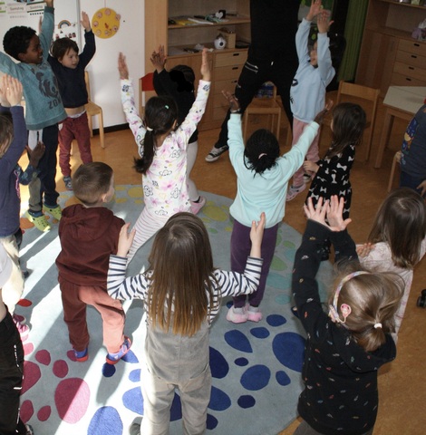 Innerhalb der 4 Wochen ging es darum, dass jedes Kind so viel Hampelmänner wie möglich macht. Jeden Tag haben die Kinder auf ihrer Hampelmannkarte die Anzahl ihrer Hampelmänner eingetragen.Das hat die Kinder motiviert immer mehr Hampelmänner zu schaffen.Manche Kinder waren so begeistert, dass sie auch zu Hause noch welche gemacht haben. Insgesamt haben die Regenbogengruppe und die Sausewindgruppe 10830 Hampelmänner in diesem Zeitraum gemeistert.